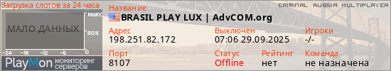 Общая информация ID: 65884 Ссылка: https://playmon.ru/server/198.251.82.172:8107 Адрес: 198.251.82.172:8107 Игроки: 0/100 Статус: Выключен Владелец: Не определён