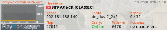 ID: 73865Ссылка: https://playmon.ru/server/202.181.188.140:27015
