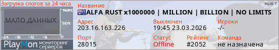 ID: 83234Ссылка: https://playmon.ru/server/203.16.163.226:28015