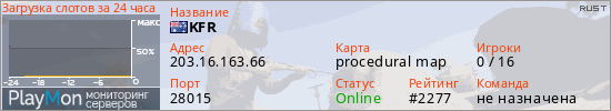 ID: 83307Ссылка: https://playmon.ru/server/203.16.163.66:28015