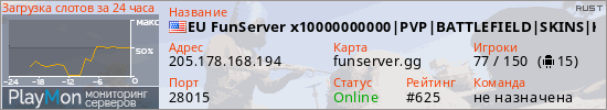 EU FunServer x10000000000|PVP|BATTLEFIELD|SKINS|KITS|TP|MYMINI| представлен в виде