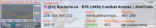 [EU] Rustoria.co - RTG (UKN) Combat Arenas | AimTrain | Targets представлен в виде сервера раст. Из всех имеющихся на сайте модификаций игровых серверов, вам может понравиться Kits серверы rust. А для быстрой навигации по всем меткам - используйте главную страницу игры Rust.