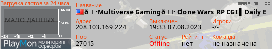 Общая информация ID: 21687 Ссылка: https://playmon.ru/server/208.103.169.224:27015 Адрес: 208.103.169.224:27015 Игроки: 0/90 Статус: Выключен Владелец: Не определён