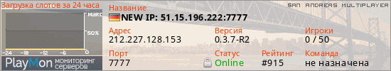 ID: 74521Ссылка: https://playmon.ru/server/212.227.128.153:7777