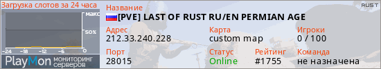ID: 82267Ссылка: https://playmon.ru/server/212.33.240.228:28015