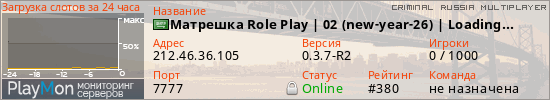 ID: 65794Ссылка: https://playmon.ru/server/212.46.36.105:7777