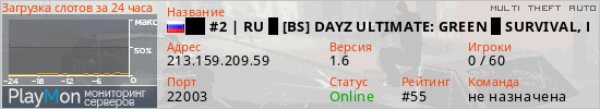 ██ #2 | RU █ [BS] DAYZ ULTIMATE: GREEN █ SURVIVAL, LOOT X2, MEDIUM ZOMBIE, 136 VEHICLE