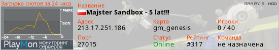 ID: 75099Ссылка: https://playmon.ru/server/213.17.251.186:27015