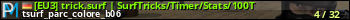 [EU3] trick.surf | SurfTricks/Timer/Stats/100T представлен в виде сервера ксс. Из всех имеющихся на сайте модификаций игровых серверов, наша система поставила метку Surf сервера css. В нашем мониторинге игровых серверов вы так же можете найти быструю навигацию по всем меткам - используйте главную страницу игры Counter Strike Source.