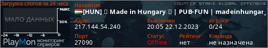[HUN] ★ Made in Hungary ★ | PUB-FUN | madeinhungarypub.hu представлен в виде сервера кс го. Из всех имеющихся на сайте модификаций игровых серверов, вам может понравиться Retake серверы csgo. А для быстрой навигации по всем меткам - используйте главную страницу игры Counter Strike Global Offensive.