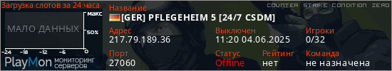 Общая информация ID: 66864 Ссылка: https://playmon.ru/server/217.79.189.36:27060 Адрес: 217.79.189.36:27060 Игроки: 0/32 Статус: Выключен Владелец: Не определён
