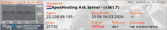 Общая информация ID: 81883 Ссылка: https://playmon.ru/server/23.109.46.165:25702 Адрес: 23.109.46.165:25702 Игроки: 0/255 Статус: Выключен Владелец: Не определён