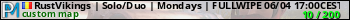RustVikings | Solo/Duo | Mondays | FULLWIPE 06/04 17:00CEST представлен в виде сервера раст. Из всех имеющихся на сайте модификаций игровых серверов, вам может понравиться NoDecay серверы rust. А для быстрой навигации по всем меткам - используйте главную страницу игры Rust.