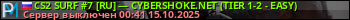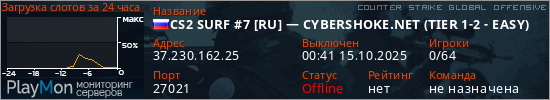 CS2 SURF #7 [RU] — CYBERSHOKE.NET (TIER 1-2 - EASY) представлен в виде сервера кс го. Из всех имеющихся на сайте модификаций игровых серверов, вам может понравиться Knife серверы csgo. А для быстрой навигации по всем меткам - используйте главную страницу игры Counter Strike Global Offensive.