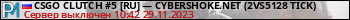 CSGO CLUTCH #5 [RU] — CYBERSHOKE.NET (2VS5128 TICK) представлен в виде сервера кс го. Из всех имеющихся на сайте модификаций игровых серверов, вам может понравиться Knife серверы csgo. А для быстрой навигации по всем меткам - используйте главную страницу игры Counter Strike Global Offensive.