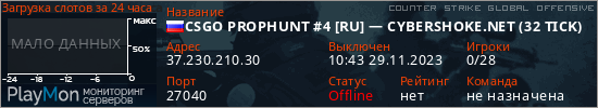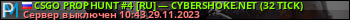 CSGO PROPHUNT #4 [RU] — CYBERSHOKE.NET (32 TICK) представлен в виде сервера кс го. Из всех имеющихся на сайте модификаций игровых серверов, вам может понравиться Knife серверы csgo. А для быстрой навигации по всем меткам - используйте главную страницу игры Counter Strike Global Offensive.