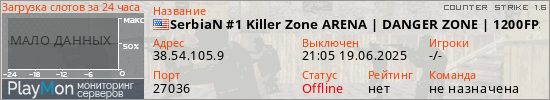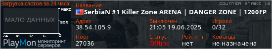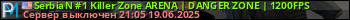 SerbiaN #1 Killer Zone ARENA | DANGER ZONE | 1200FPS представлен в виде сервера кс 1.6. Из всех имеющихся на сайте модификаций игровых серверов, вам может понравиться Knife серверы cs. А для быстрой навигации по всем меткам - используйте главную страницу игры Counter Strike 1.6.