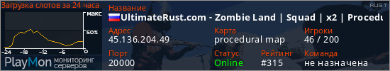 UltimateRust.com - Zombie Land | Squad | x2 | Procedural | 27.0 представлен в виде сервера раст. Из всех имеющихся на сайте модификаций игровых серверов, вам может понравиться Kits серверы rust. А для быстрой навигации по всем меткам - используйте главную страницу игры Rust.