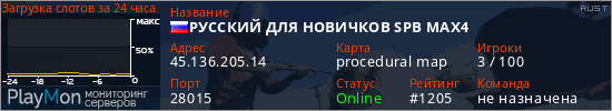 ID: 82626Ссылка: https://playmon.ru/server/45.136.205.14:28015