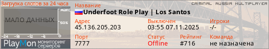 ID: 72620Ссылка: https://playmon.ru/server/45.136.205.203:7777