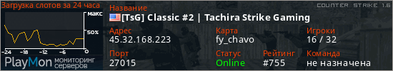[TsG] Classic #2 | Tachira Strike Gaming представлен в виде сервера кс 1.6. Из всех имеющихся на сайте модификаций игровых серверов, наша система поставила метку Classic сервера cs. В нашем мониторинге игровых серверов вы так же можете найти быструю навигацию по всем меткам - используйте главную страницу игры Counter Strike 1.6.