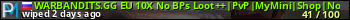 WARBANDITS.GG EU 10X No BPs Loot++|PvP|MyMini|Shop|Noob Friendl представлен в виде