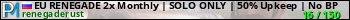EU RENEGADE 2x Monthly | SOLO ONLY | 50% Upkeep | No BP Wipe | представлен в виде сервера раст. Из всех имеющихся на сайте модификаций игровых серверов, вам может понравиться PvE серверы rust. А для быстрой навигации по всем меткам - используйте главную страницу игры Rust.