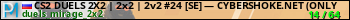 CS2 DUELS 2X2 | 2x2 | 2v2 #24 [SE] — CYBERSHOKE.NET (ONLY MIR представлен в виде сервера кс 2. Из всех имеющихся на сайте модификаций игровых серверов, вам может понравиться Knife серверы cs2. А для быстрой навигации по всем меткам - используйте главную страницу игры Counter Strike 2.