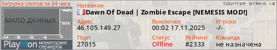 ID: 69774Ссылка: https://playmon.ru/server/46.105.149.27:27015