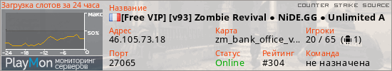 [Free VIP] [v93] Zombie Revival ● NiDE.GG ● Unlimited Ammo|Shop представлен в виде сервера ксс. Из всех имеющихся на сайте модификаций игровых серверов, наша система поставила метку Zombie сервера css. В нашем мониторинге игровых серверов вы так же можете найти быструю навигацию по всем меткам - используйте главную страницу игры Counter Strike Source.