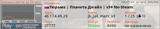 Тюрьма | Планета Джайл | v34 No-Steam представлен в виде сервера ксс. Из всех имеющихся на сайте модификаций игровых серверов, наша система поставила метку JailBreak сервера css. В нашем мониторинге игровых серверов вы так же можете найти быструю навигацию по всем меткам - используйте главную страницу игры Counter Strike Source.