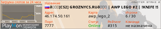 💚[CS2] GROZNYCS.RU💚 | AWP LEGO #2 | !KNIFE !SKINS представлен в виде сервера кс 2. Из всех имеющихся на сайте модификаций игровых серверов, наша система поставила метку AWP сервера cs2. В нашем мониторинге игровых серверов вы так же можете найти быструю навигацию по всем меткам - используйте главную страницу игры Counter Strike 2.