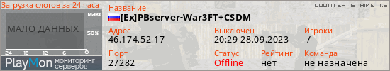 [Ex]PBserver-War3FT+CSDM представлен в виде сервера кс 1.6. Из всех имеющихся на сайте модификаций игровых серверов, наша система поставила метку DeathMatch сервера cs. В нашем мониторинге игровых серверов вы так же можете найти где поиграть на War3FT сервере кс 1.6.