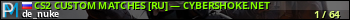 CS2 CUSTOM MATCHES [RU] — CYBERSHOKE.NET представлен в виде сервера кс го. Из всех имеющихся на сайте модификаций игровых серверов, вам может понравиться GunGame серверы csgo. А для быстрой навигации по всем меткам - используйте главную страницу игры Counter Strike Global Offensive.