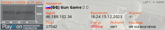 Общая информация ID: 52318 Ссылка: https://playmon.ru/server/46.188.102.34:27042 Адрес: 46.188.102.34:27042 Игроки: 0/16 Статус: Выключен Владелец: Не определён