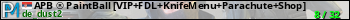 APB ® PaintBall [VIP+FDL+KnifeMenu+Parachute+Shop] представлен в виде сервера кс 1.6. Из всех имеющихся на сайте модификаций игровых серверов, наша система поставила метку PaintBall сервера cs. В нашем мониторинге игровых серверов вы так же можете найти быструю навигацию по всем меткам - используйте главную страницу игры Counter Strike 1.6.