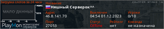 Няшный Серверок^^ представлен в виде сервера кс 1.6. Из всех имеющихся на сайте модификаций игровых серверов, вам может понравиться Hide'n'Seek серверы cs. А для быстрой навигации по всем меткам - используйте главную страницу игры Counter Strike 1.6.