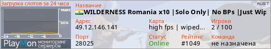 WILDERNESS Romania x10 |Solo Only| No BPs |Just Wiped|Events представлен в виде сервера раст. Из всех имеющихся на сайте модификаций игровых серверов, вам может понравиться NoDecay серверы rust. А для быстрой навигации по всем меткам - используйте главную страницу игры Rust.