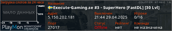 Execute-Gaming.se #3 - SuperHero [FastDL] [30 Lvl] представлен в виде сервера кс 1.6. Из всех имеющихся на сайте модификаций игровых серверов, вам может понравиться Hide'n'Seek серверы cs. А для быстрой навигации по всем меткам - используйте главную страницу игры Counter Strike 1.6.
