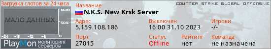 Общая информация ID: 55667 Ссылка: https://playmon.ru/server/5.159.108.186:27015 Адрес: 5.159.108.186:27015 Игроки: 0/64 Статус: Выключен Владелец: Не определён