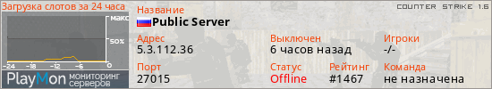 ID: 74029Ссылка: https://playmon.ru/server/5.3.112.36:27015