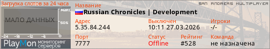 ID: 74296Ссылка: https://playmon.ru/server/5.35.84.244:7777