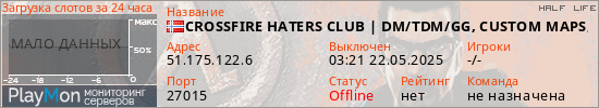 Общая информация ID: 67536 Ссылка: https://playmon.ru/server/51.175.122.6:27015 Адрес: 51.175.122.6:27015 Игроки: 0/32 Статус: Выключен Владелец: Не определён