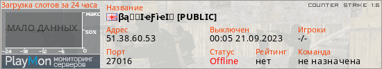 βąէէӀҽƑìҽӀժ [PUBLIC] представлен в виде сервера кс 1.6. Из всех имеющихся на сайте модификаций игровых серверов, вам может понравиться Hide'n'Seek серверы cs. А для быстрой навигации по всем меткам - используйте главную страницу игры Counter Strike 1.6.