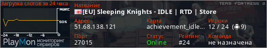[EU] Sleeping Knights - IDLE | RTD | Store представлен в виде сервера тф2. Из всех имеющихся на сайте модификаций игровых серверов, вам может понравиться JailBreak серверы tf2. А для быстрой навигации по всем меткам - используйте главную страницу игры Team Fortress 2.