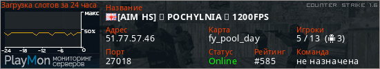 [AIM HS] ★ POCHYLNIA ★ 1200FPS представлен в виде сервера кс 1.6. Из всех имеющихся на сайте модификаций игровых серверов, наша система поставила метку AIM сервера cs. В нашем мониторинге игровых серверов вы так же можете найти быструю навигацию по всем меткам - используйте главную страницу игры Counter Strike 1.6.