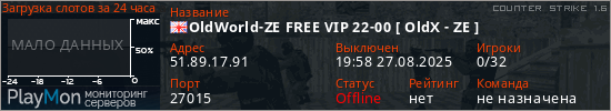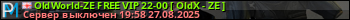 OldWorld-ZE FREE VIP 22-00 [ OldX - ZE ] представлен в виде сервера кс 1.6. Из всех имеющихся на сайте модификаций игровых серверов, вам может понравиться Hide'n'Seek серверы cs. А для быстрой навигации по всем меткам - используйте главную страницу игры Counter Strike 1.6.