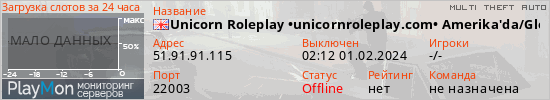Общая информация ID: 61481 Ссылка: https://playmon.ru/server/51.91.91.115:22003 Версия: 1.6 Адрес: 51.91.91.115:22003 Игроки: 0/300 Статус: Выключен Владелец: Не определён