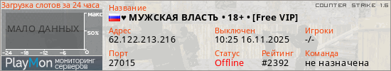 ID: 73376Ссылка: https://playmon.ru/server/62.122.213.216:27015