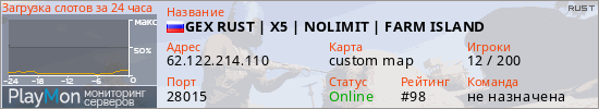 ID: 69239Ссылка: https://playmon.ru/server/62.122.214.110:28015